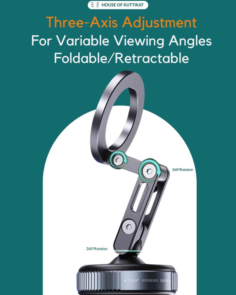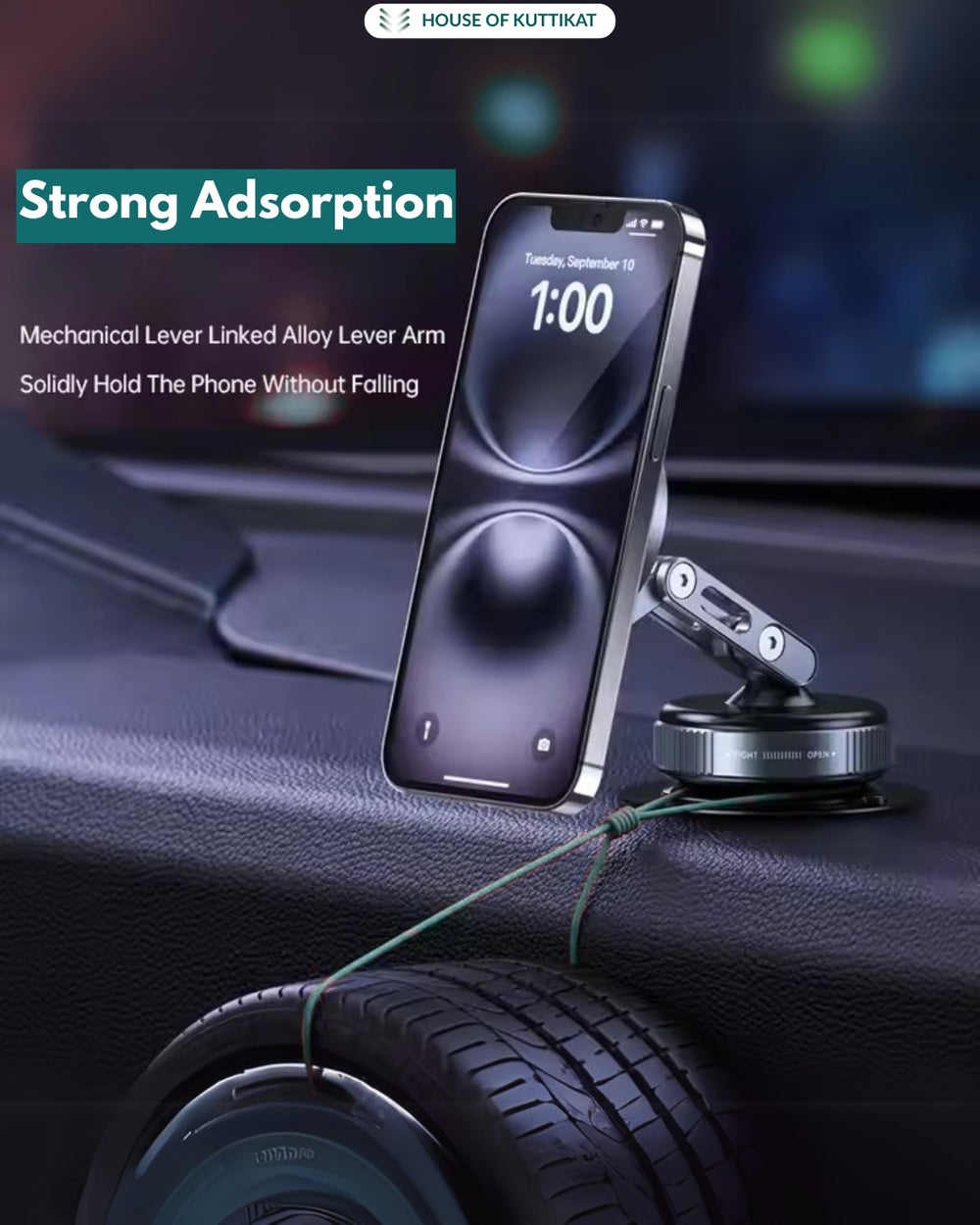 Dual-Side Magnetic Vacuum SuctionEquipped with advanced vacuum suction technology and powerful N52 magnets, this mount provides strong magnetic strength on both sides. Whether you’re on bumpy roads or braking suddenly, your phone stays securely in place.
